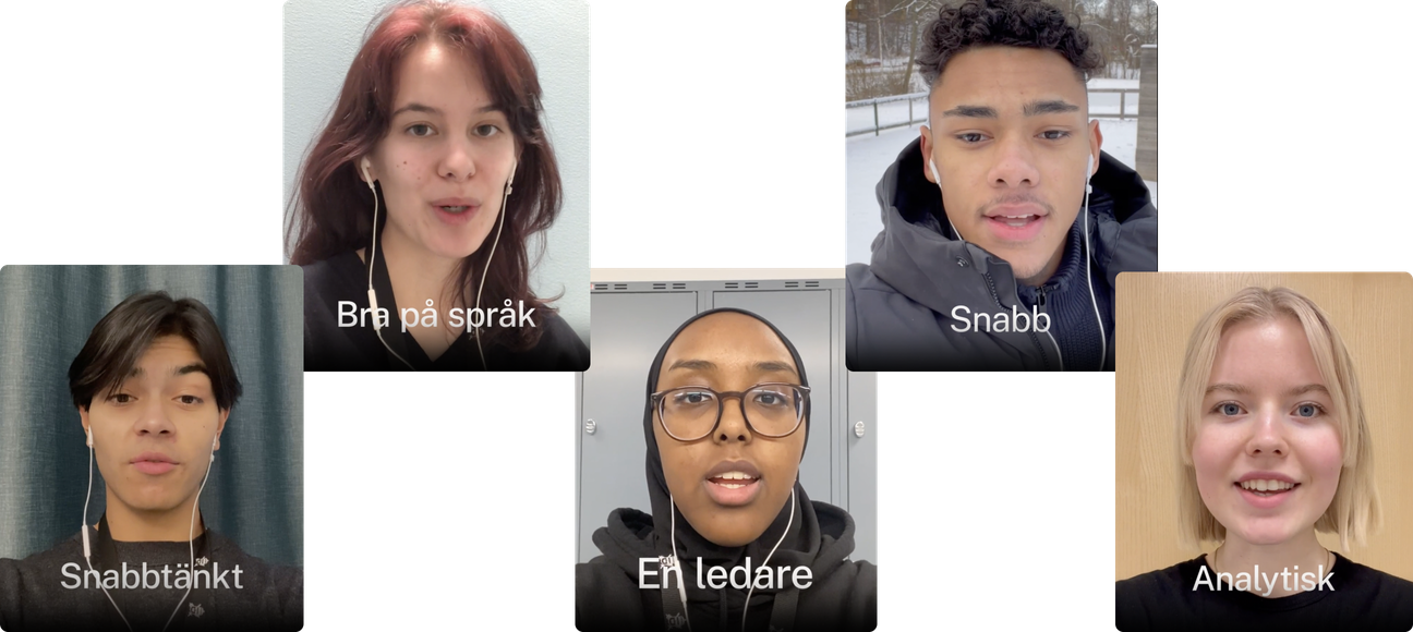 Knowing that young people are primarily inspired by people they can identify with, we created a concept based on the idea of letting young people speak directly to other young people (instead of authorities to young people). In a series of clips, actual 18-year-olds talk about what strengths they see in themselves. The idea of letting young people film themselves was based on the realisation that the target audience values authenticity in the content they consume.